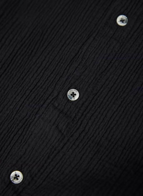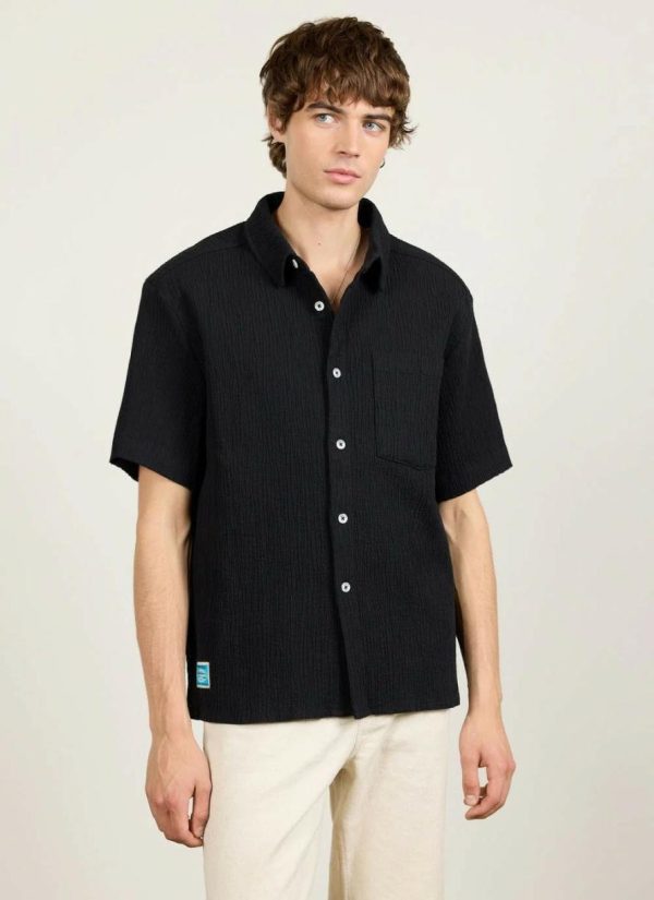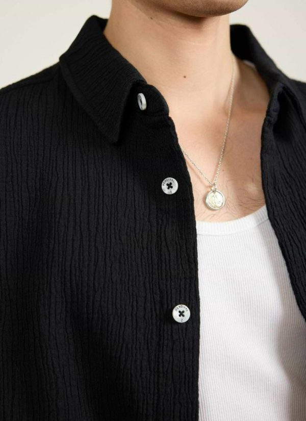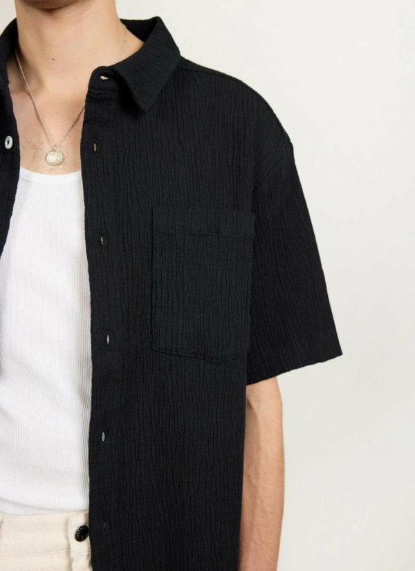 - Features: Men’s short sleeve shirt in a boxy fit. Made from a textured woven fabric and with buttons, this black boxy shirt is a staple for every man’s wardrobe and ideal for layering.