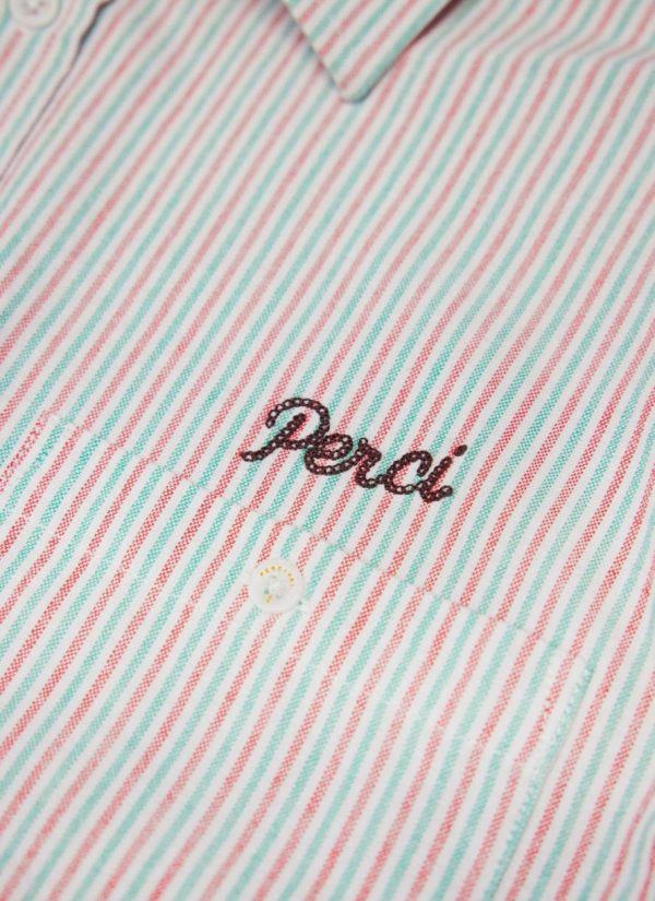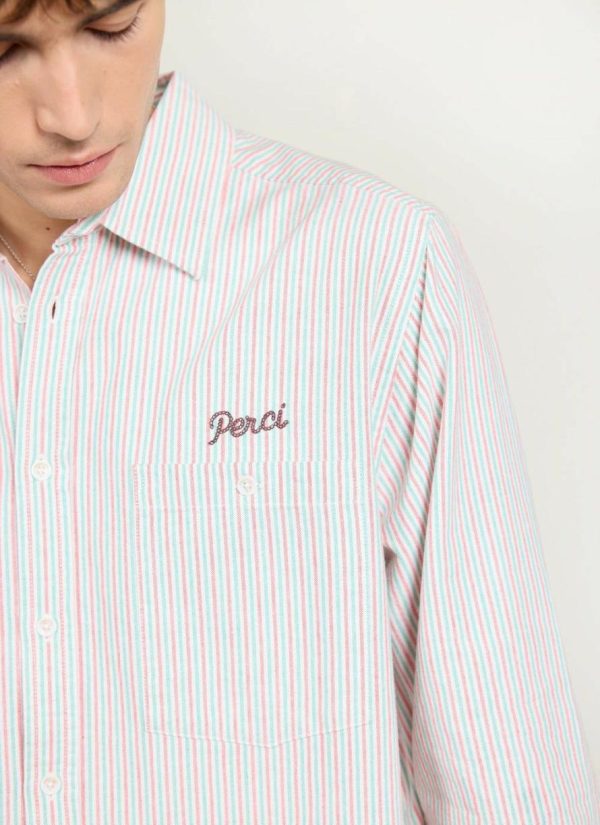 - Features: Men’s oversized shirt with long sleeves. In a modern shirt shape, tonal engraved buttons and front ‘Perci’ embroidery, this striped shirt is ideal for layering or wearing on its own.