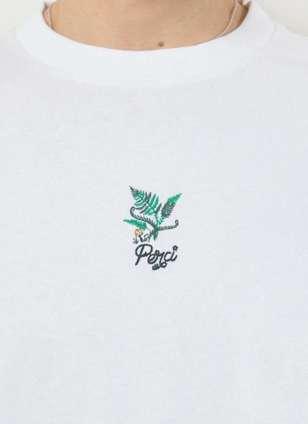- Features: Men’s oversized white T Shirt made from 100% organic cotton. Finished with intricate fern embroidery at the centre front, this embroidered T Shirt is perfect for everyday wear.