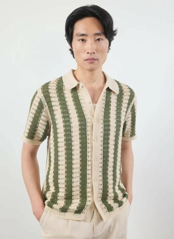 - Features: Men’s cotton crochet shirt, made in truly limited quantities. Ribbed collar, button down shirt, striped crochet.
