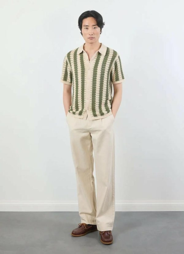Percival Spring Summer 2025, full flavour, full Perci pomodoro, the sauce of good fits. Italian food, Percival flare, well good quality knitwear. Barletta knitted shirt, crochet dream in an olive come pitchasio ice cream colour way. Stroll the streets, gelato treats.
