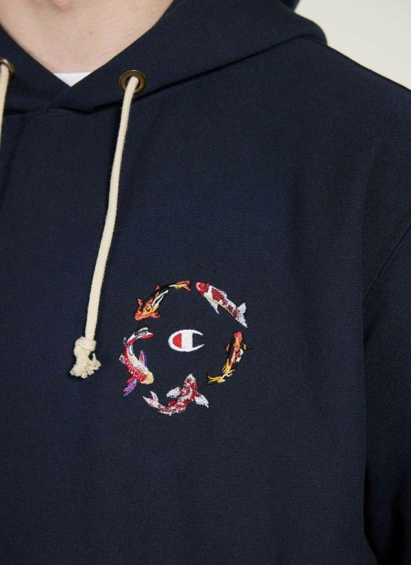 - Features: Men’s heavyweight hoodie with koi carp and Champion embroidery. Embroidered by Percival in London on a 400 gsm reverse weave premium fleece and with a crew neck, this navy champion hoodie is an easy-to-wear wardrobe staple.