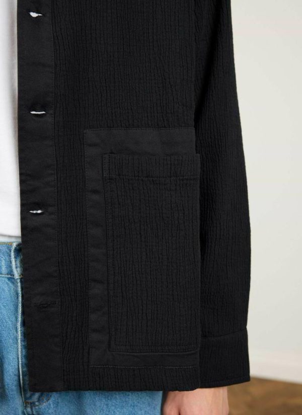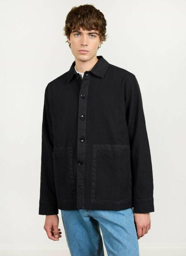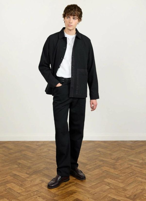 - Features: Men’s chore jacket made from a textured woven fabric. Finished with internal and external pockets, this black work jacket is an easy-to-wear wardrobe staple and perfect for Autumn layering.