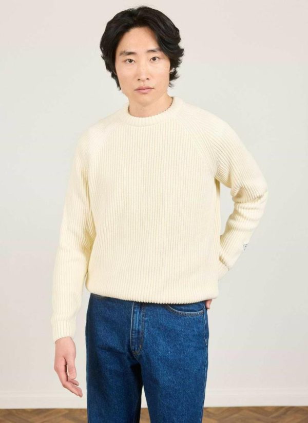 - Features: Made in Portugal from 100% organic cotton in a chunky knit ribbing construction. This cream jumper offers a comfortable and stylish option for cooler seasons with its classic crew neck and raglan design.