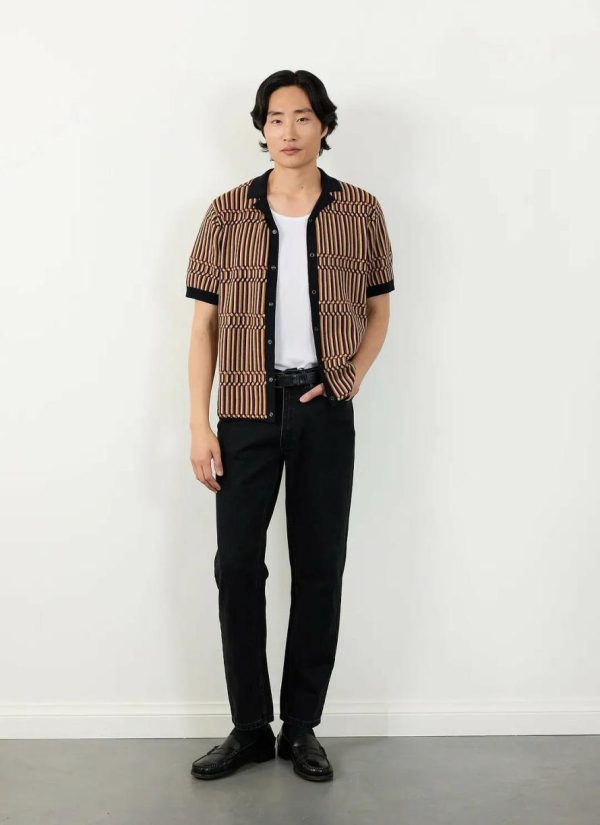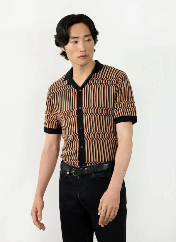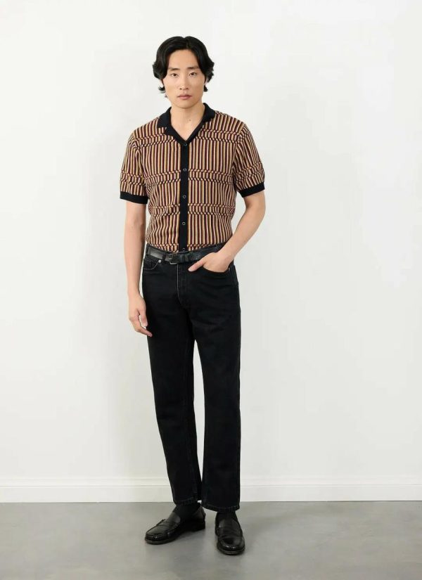 - Features: Men’s knit polo shirt made from 100% cotton. With a new collar detail from Percival and in a custom jacquard fabric, this brown knitted polo shirt is ideal for smart casual dressing in Autumn.