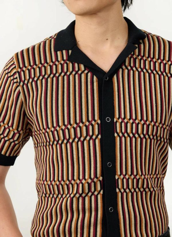 Winner winner, Percival knit polo to wear to dinner. Made in small lots (120 so extra special) by the knitting machine bots. Percival quality Fargo jacquard knit polo, more of a shirt, really. Lovely new collar detail, original Percival design, perfect smart office attire, and made just for 120 of you, lucky you.