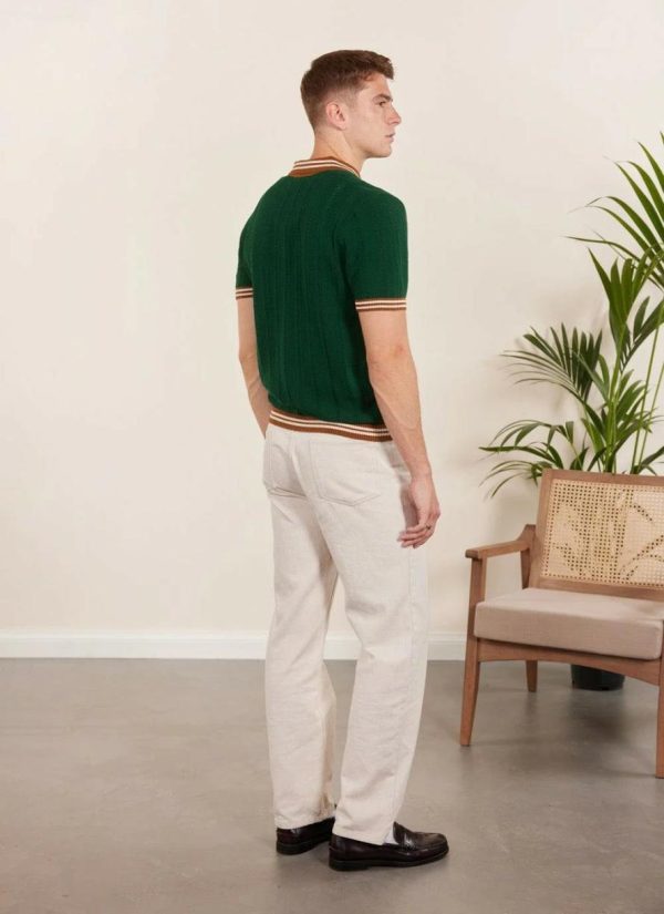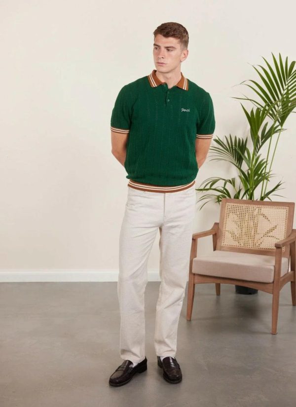 - Features: This classic, best-selling knitted polo silhouette is timeless, keeping you looking smart and feeling comfortable all day and night. Made from 100% cotton, this green polo shirt features a relaxed fit and comes in a stylish ecru and brown colour combination.