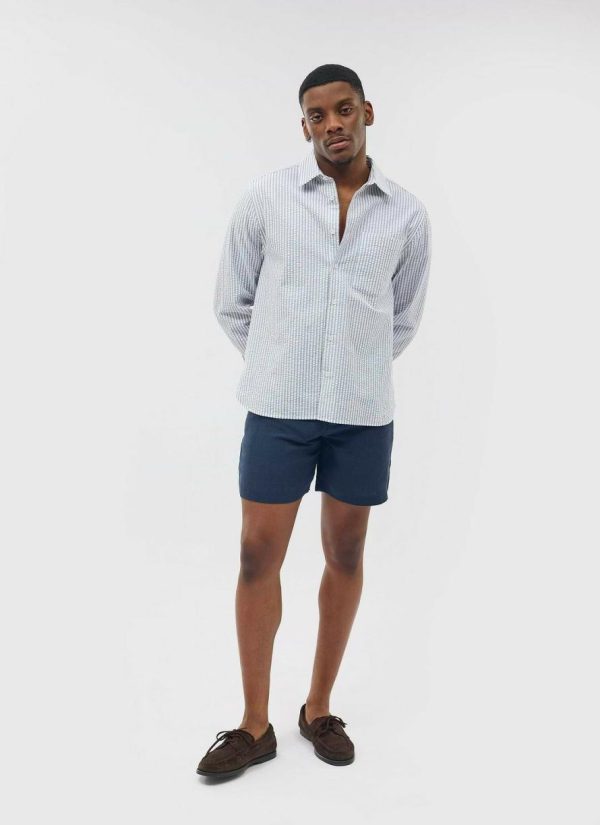 The fact is these shorts are a new smart shape for Percival with a pleated details, cut in a slightly wider fit and above the knee. Shorts can be paired with matching linen blazer or shirt, for a number one look. Or pair shorts with a tee, clean fresh, even go a little casual with a vest under open Percival summer shirt. Plenty of truths.