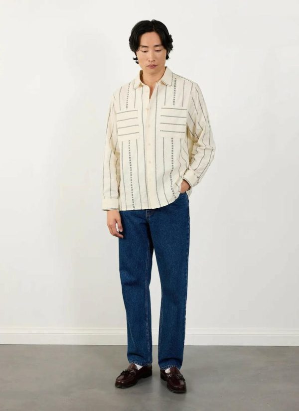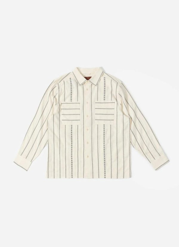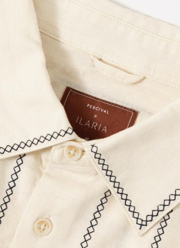 - Features: Men’s embroidered shirt in an oversized fit. Made from a linen fabric and finished with custom stitching, this off white shirt is ideal for all seasons.