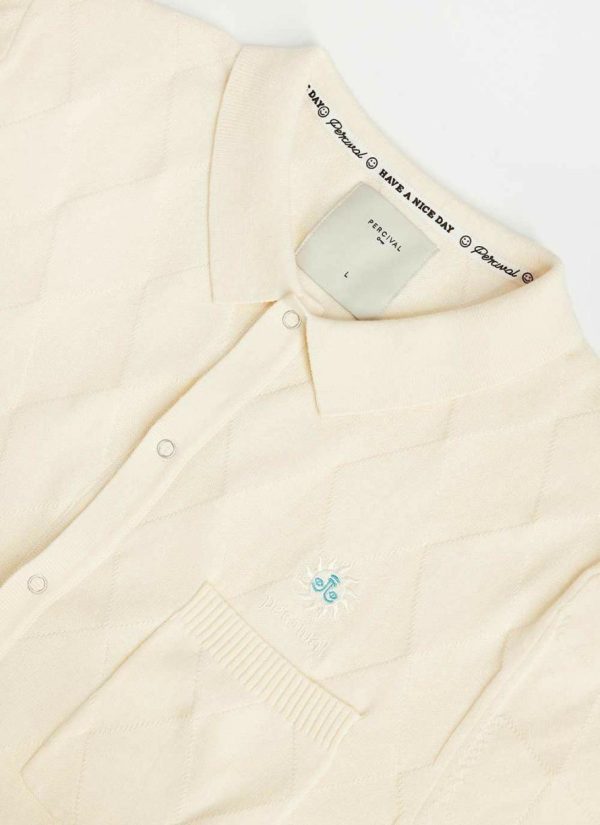 Trans seasonal knit shirt of the season, a daily wearer or wear it daily on holiday. Intarsia detail (where the knit detail is on the reverse) diamond knitted shapes. A diamond in the rough? Yes.