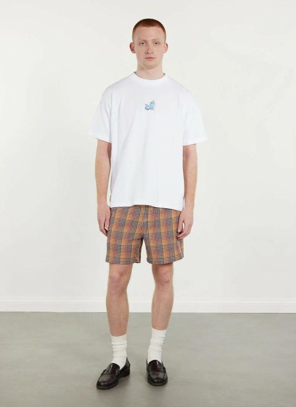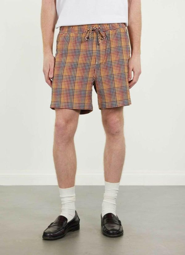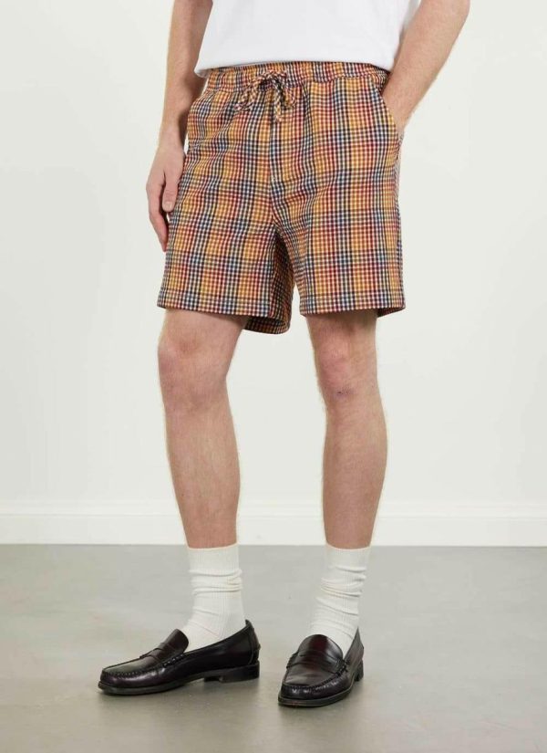- Features: Men’s checked shorts with a drawstring waist. With a wider leg and pockets, these everyday shorts are perfect for summer slouching.