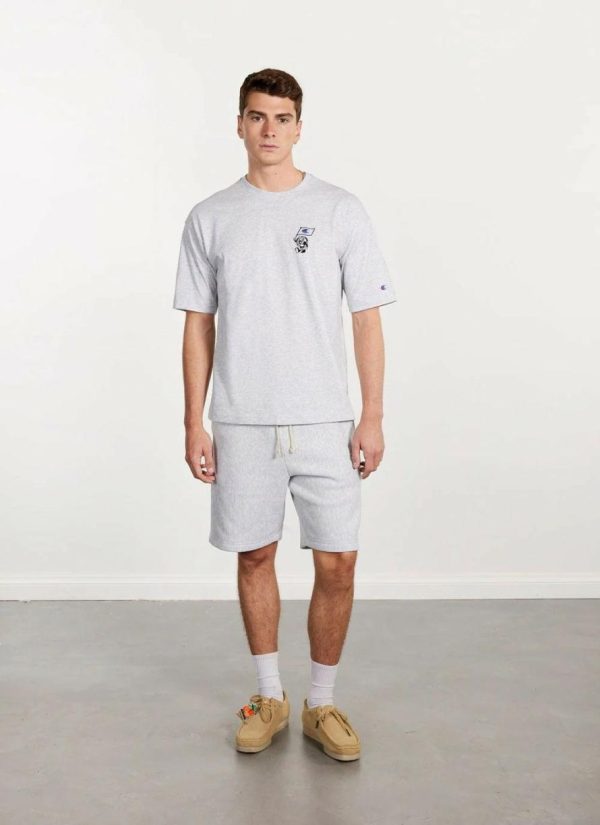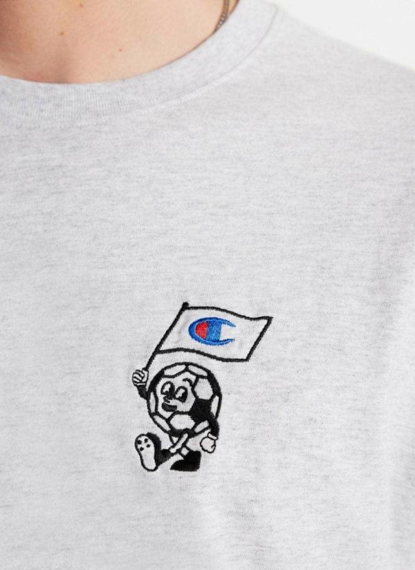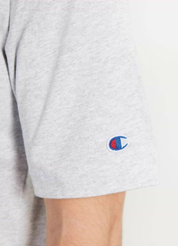 - Features: Men’s short sleeve t shirt with Champion embroidery. Embroidered and screen printed by Percival in London on a 180 gsm premium cotton, this athletic grey champion t shirt is ideal for warm weather and an easy-to-wear staple.