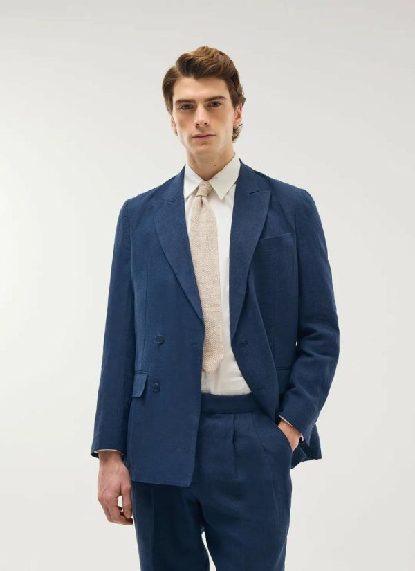 New year new suit, new fit. Percival Tailored double breasted blazer. What would this blazer be if it was a burger, the big cheese, the big Kahuna, it would be a special limited edition. Cut from our finest linen, deconstructed blazer construction, meaning it’s easy to wear, not at all a stuffy suit. Wear with matching linen trousers, there are some fit options, or wear with linen short even pair it with jeans, versatile blazer style.